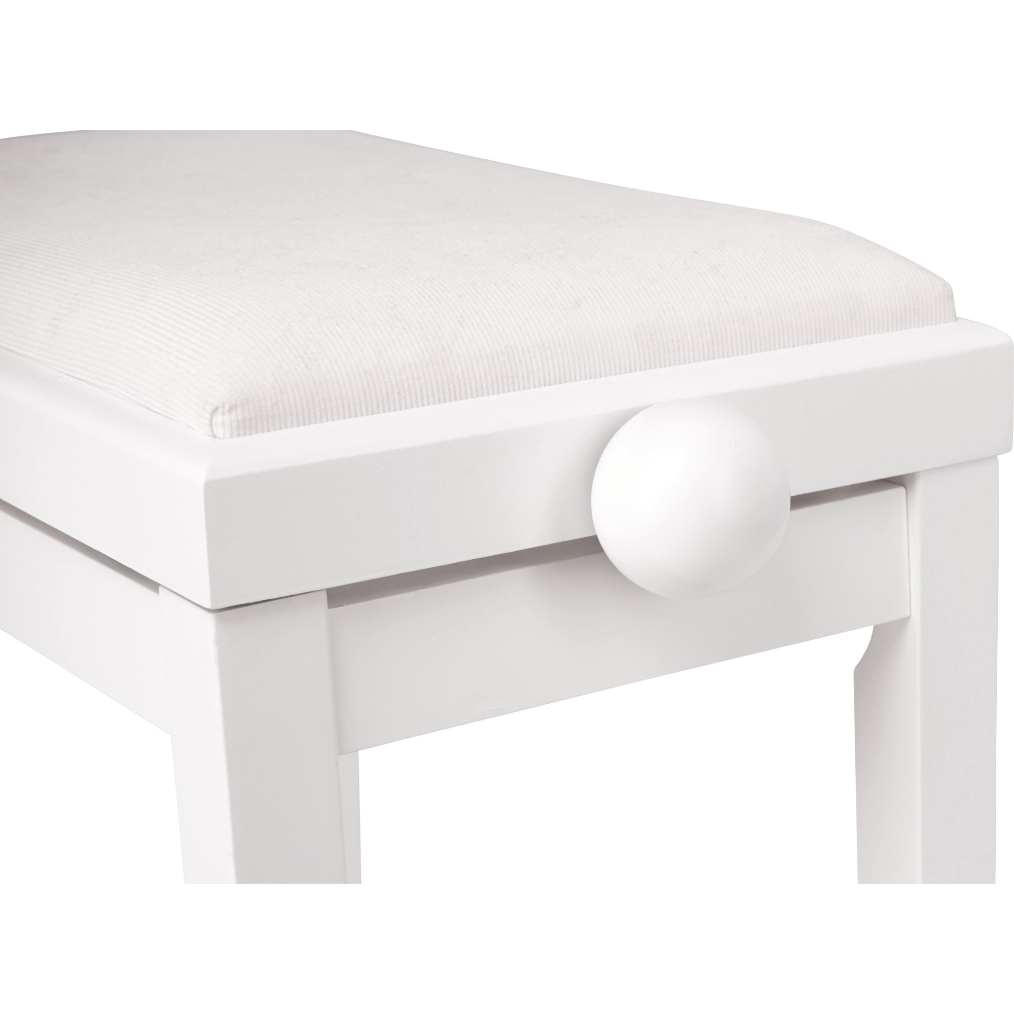 Diese Pianobank bietet neben ihrer edlen Optik hochwertige Ausstattungmerkmale wie stabile, mit rutschfestem Gummi versehene Beine, eine leichtgängige, präzise Spindelmechanik zur Höhenverstellung und eine strapazierfähige, bequeme Sitzfläche mit Velourbezug. Die ausgeklügelte Spindelmechanik mit Doppelscherensystem garantiert eine leichtgängige und extrem langlebige Justierung der Sitzhöhe. Kleine Details wie die Gummistopper zwischen Grundrahmen und Auflagerahmen heben diese schöne Pianobank deutlich von anderen Bänken dieser Preisklasse ab.