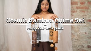 Erhältlich in vier, den Tageszeiten angepassten Stimmungen: Aurora (Morgen), Sol (Tag), Luna (Abend) und Stella (Nacht). Kombinieren Sie zwei oder mehr Cosmic Bamboo Chimes, um die Stimmung zu variieren.