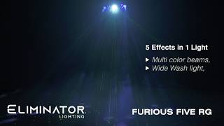 Der neue Furious Five RG von Eliminator bietet eine Beleuchtungslösung aus einer Hand und vereint fünf deutlich unterschiedliche Effekte in einem kompakten Gerät. Dieses einzigartige Gerät ist ideal für mobile Entertainer und Installateure, die in Bars und Clubs mit begrenztem Platzangebot arbeiten.
