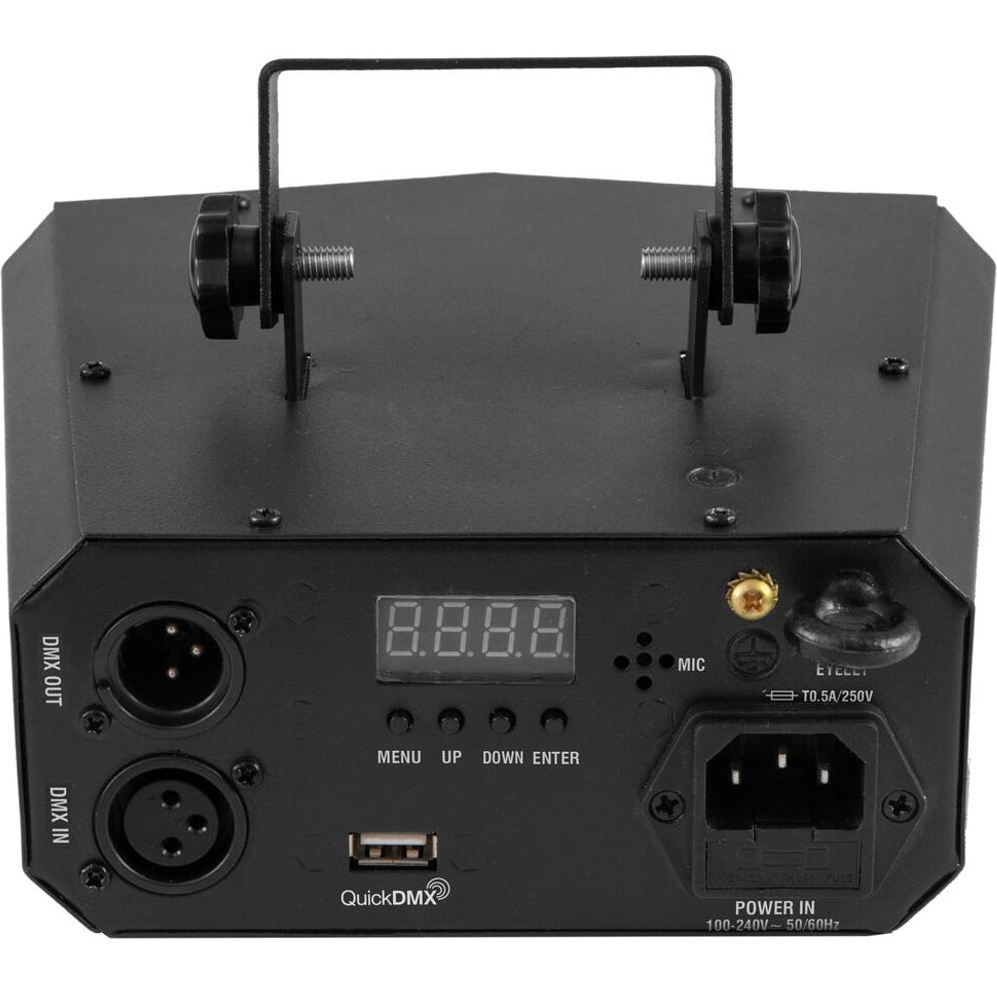 - Ansteuerbar über Stand-alone, IR-Fernbedienung, DMX, Musiksteuerung über Mikrofon, Master/Slave Funktion, QuickDMX über USB (optional), W-DMX by Wireless Solution über USB (optional), CRMX by LumenRadio über USB (optional)