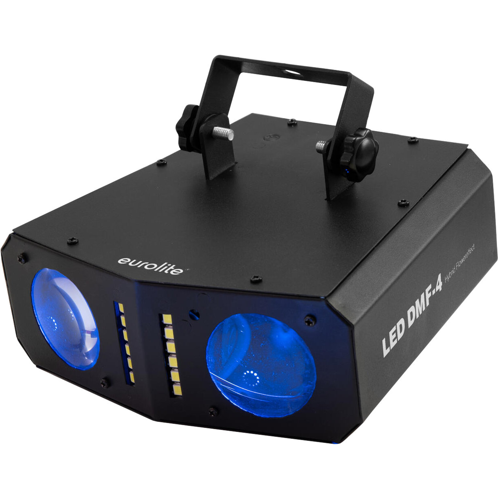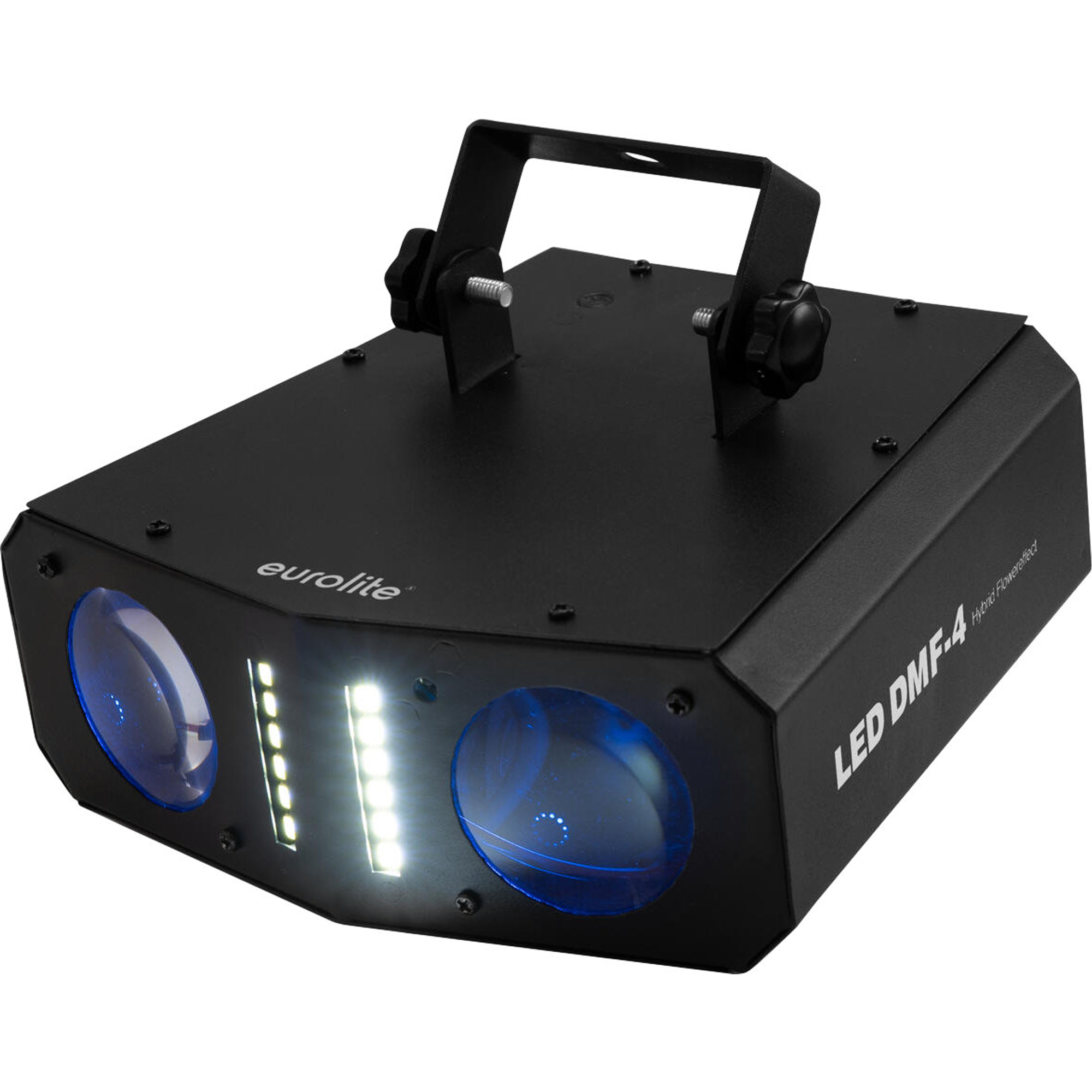 Der Eurolite LED DMF-4 kombiniert kräftige RGB-Flowereffekte aus 70 LEDs mit einem schnellen, kaltweißen Stroboskop aus 12 SMDs. Du steuerst flexibel per DMX über 7 Kanäle, im Stand-Alone/Master-Slave oder im Musikmodus via eingebautem Mikrofon; 4 Auto-Programme und 8 direkte Farbpresets sind an Bord. Die Bedienung gelingt bequem über Display, Tasten oder die beiliegende IR-Fernbedienung.