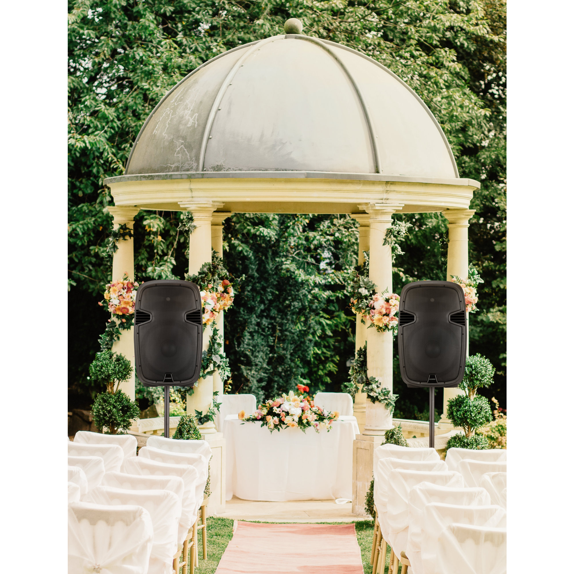 Für eine gleichmäßige, großräumige Beschallung können zwei P215 MA per Bluetooth® miteinander gekoppelt werden. Durch diese Technik ist nur ein Abspielgerät nötig, die Musik ertönt aber aus beiden Lautsprechern.