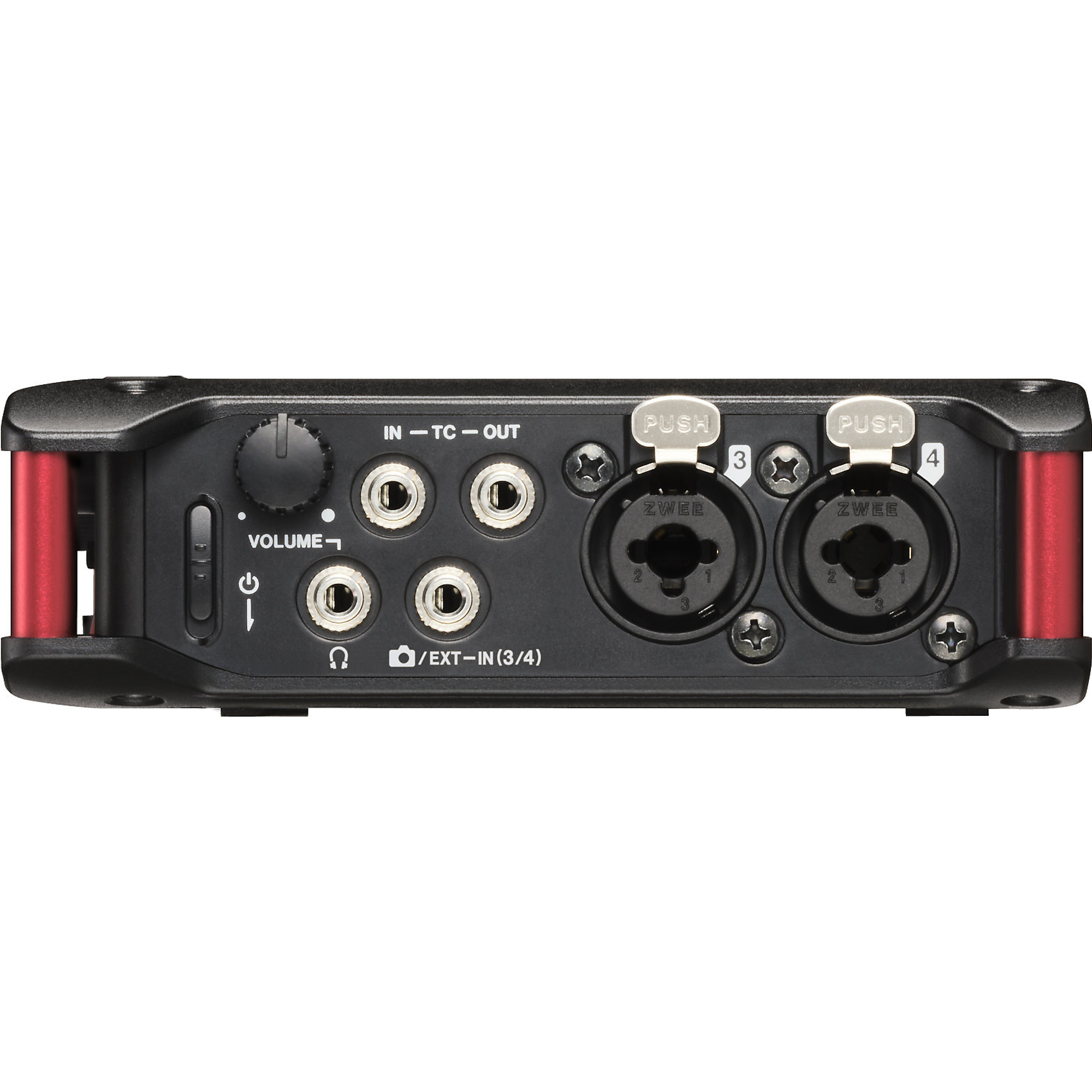- Stereo-Kamera-/Timecode-/Line-Ausgang über 3,5-mm-Klinkenbuchse