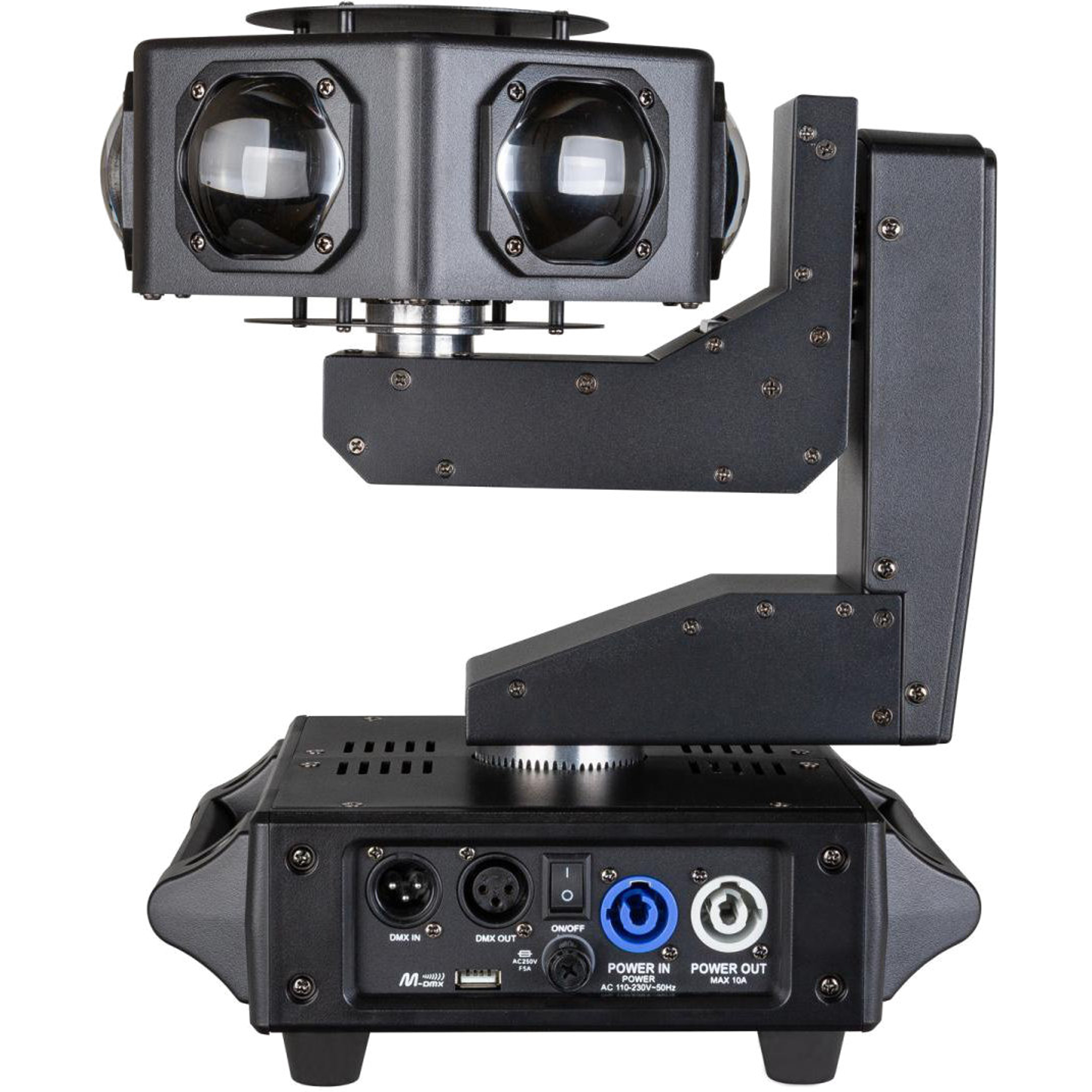 Ein gut lesbares LCD-Display ermöglicht eine intuitive Navigation durch alle Einstellungen. PowerCon-kompatible Ein- und Ausgänge sorgen für sichere Energieversorgung und zuverlässige Durchschleifmöglichkeiten. Die 3-Pin-XLR-Anschlüsse garantieren saubere DMX-Verbindungen. Mit der optionalen Omega-Halterung wird die Montage besonders einfach.