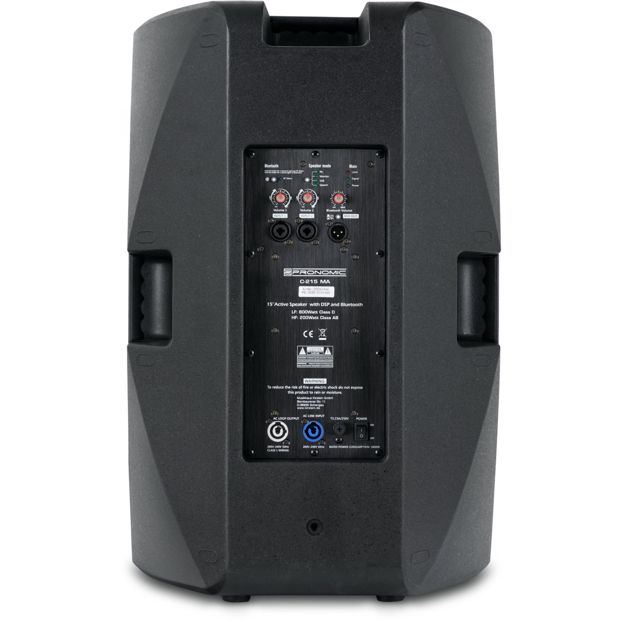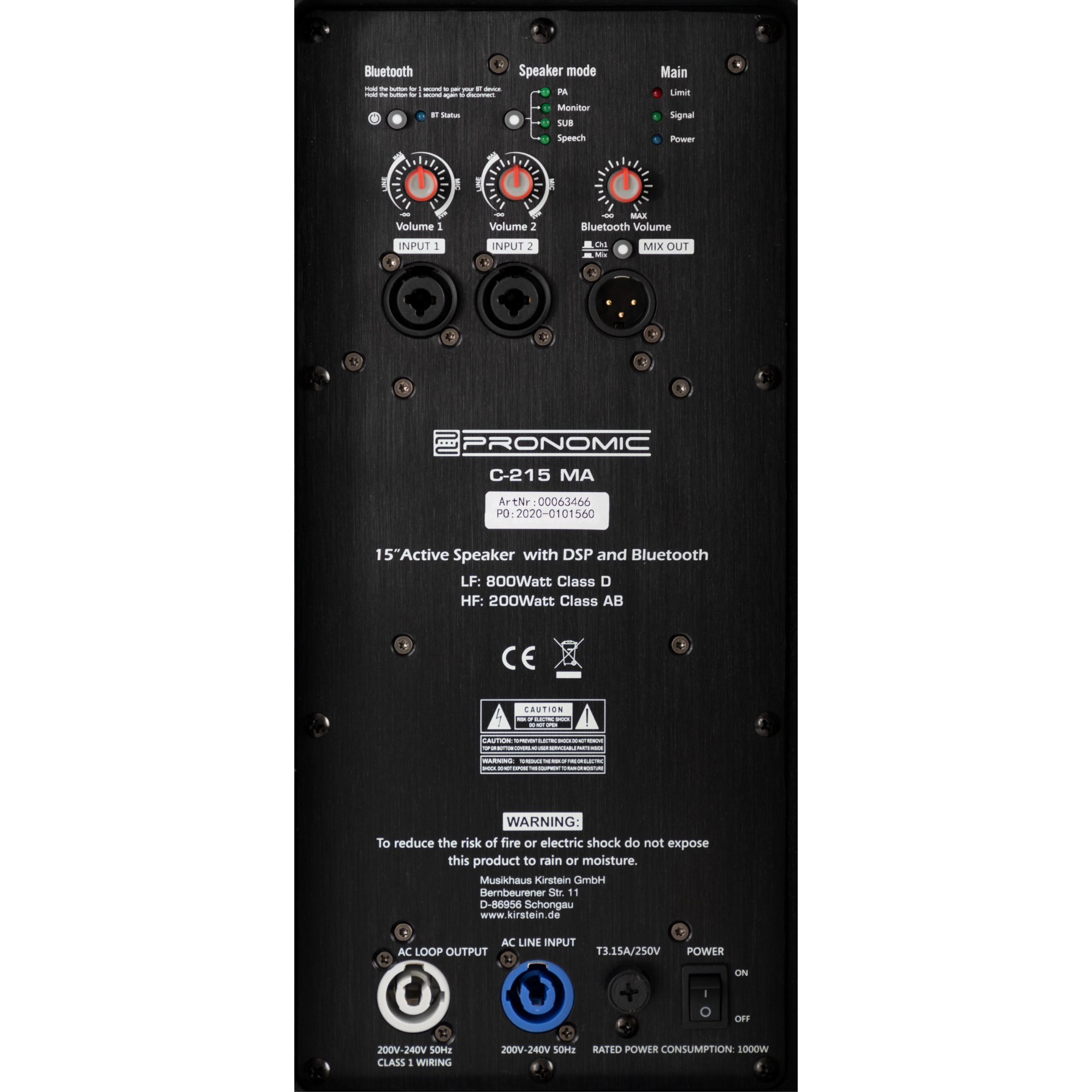 - Eingänge 6.3mm Klinke, Bluetooth, PowerCon, XLR