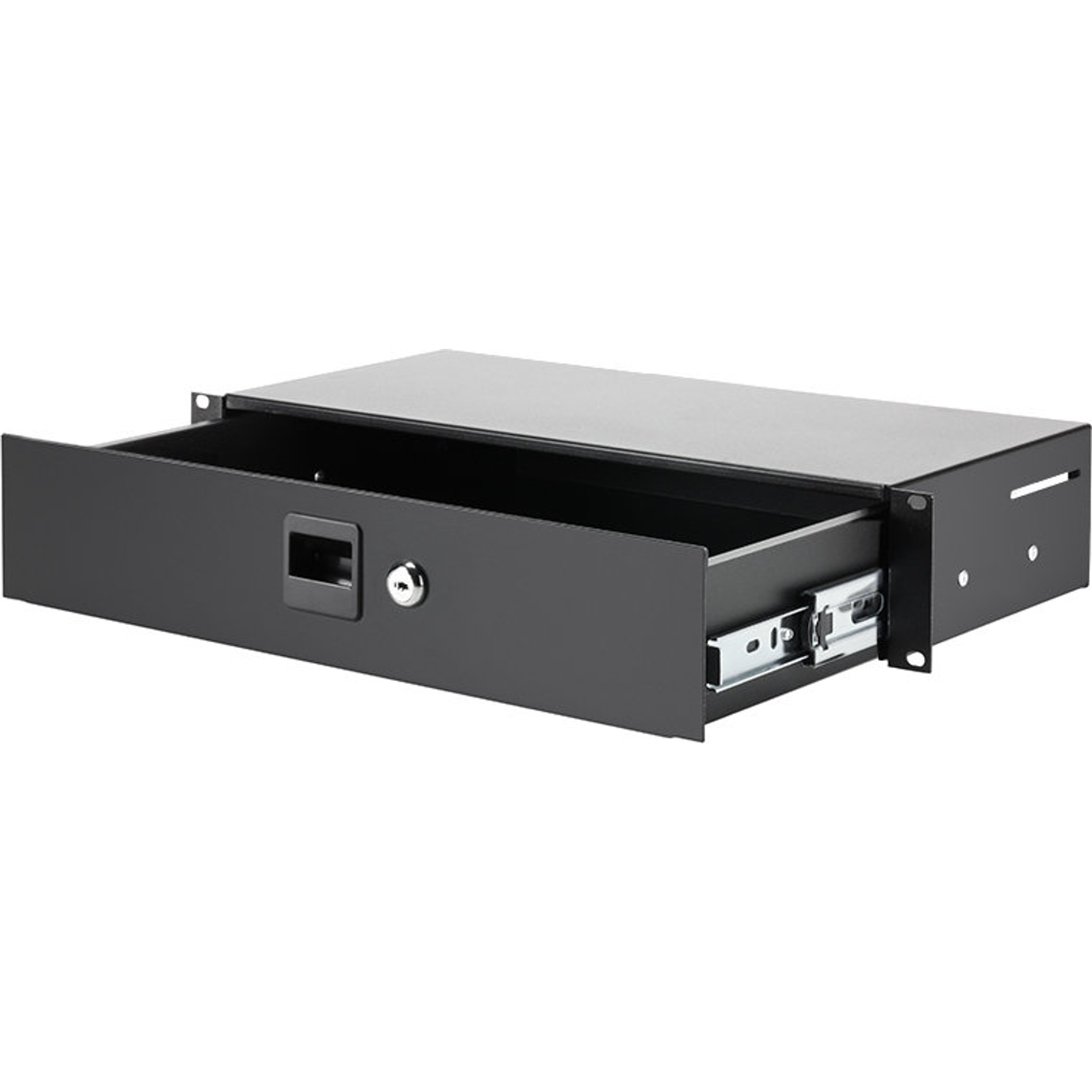 Die Adam Hall "Standard" Reihe der 19" Schubladen ist mit Vollauszug auf kugelgelagerter Einschubschiene ausgestattet, besteht aus Stahl und ist dadurch robust. Die herausnehmbare Schublade verfügt über ein Schloss mit zwei Schlüsseln zur sicheren Aufbewahrung des Inhalts und einen Griff mit Einrastfunktion .