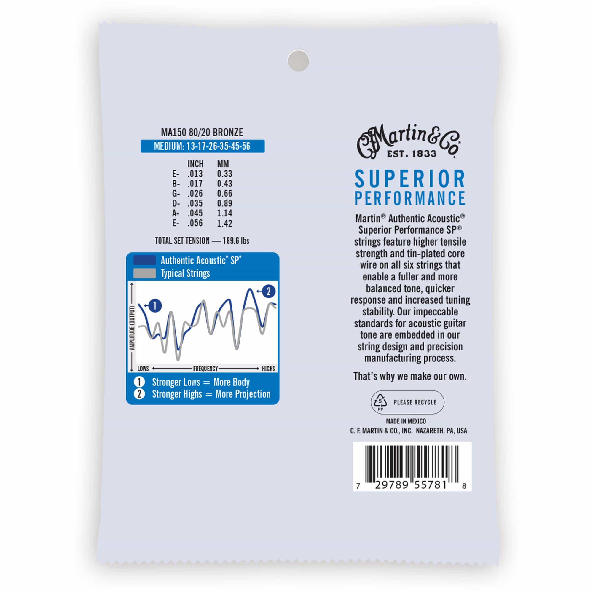 Martin Guitar MA150 Authentic Acoustic SP 80/20 Bronze Medium - Acoustic Guitar Strings!