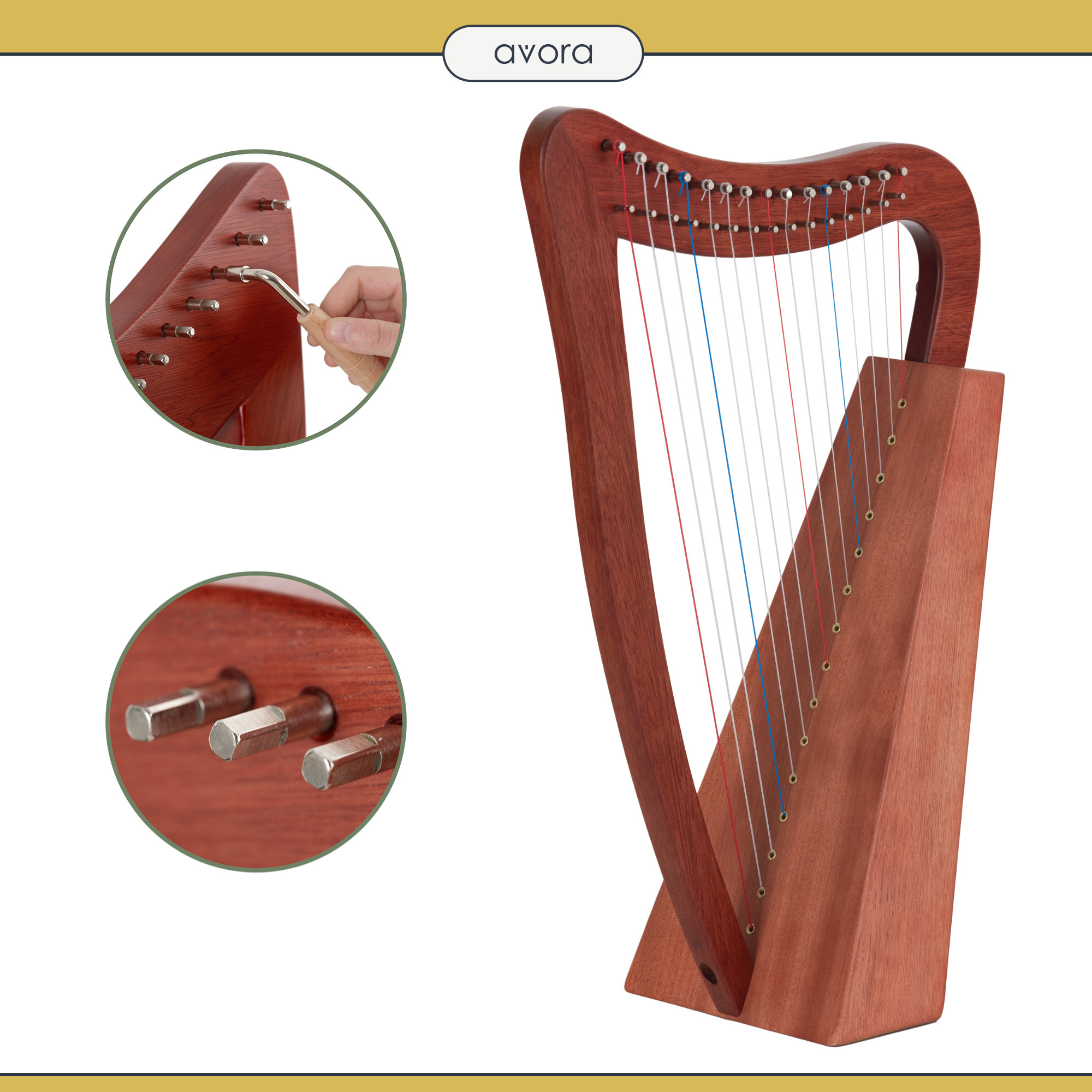 - 1 x Avora Keltische Harfe 15 Saiten Mahogany