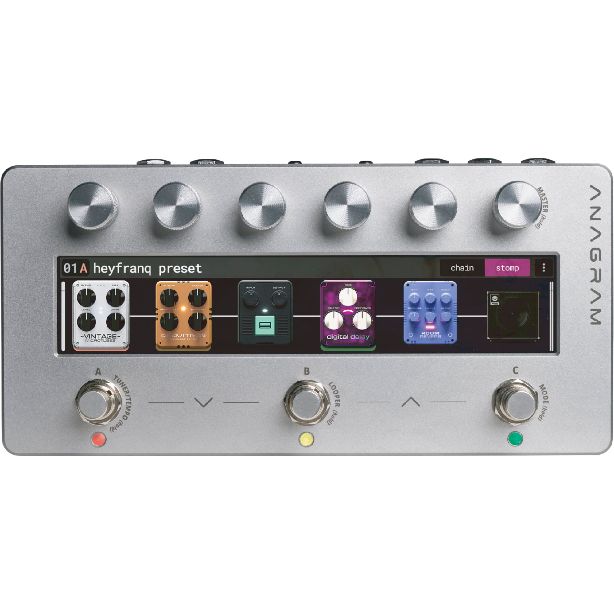 Bis zu 24 DSP-Blöcke, paralleles Routing, Wet/Dry-Splits, Multiband-Setups - das Anagram gibt Dir völlige Freiheit, Deine Kette zu gestalten. Ob klassische Sounds oder abgefahrene Layer-Experimente: Alles ist möglich und exakt reproduzierbar.
