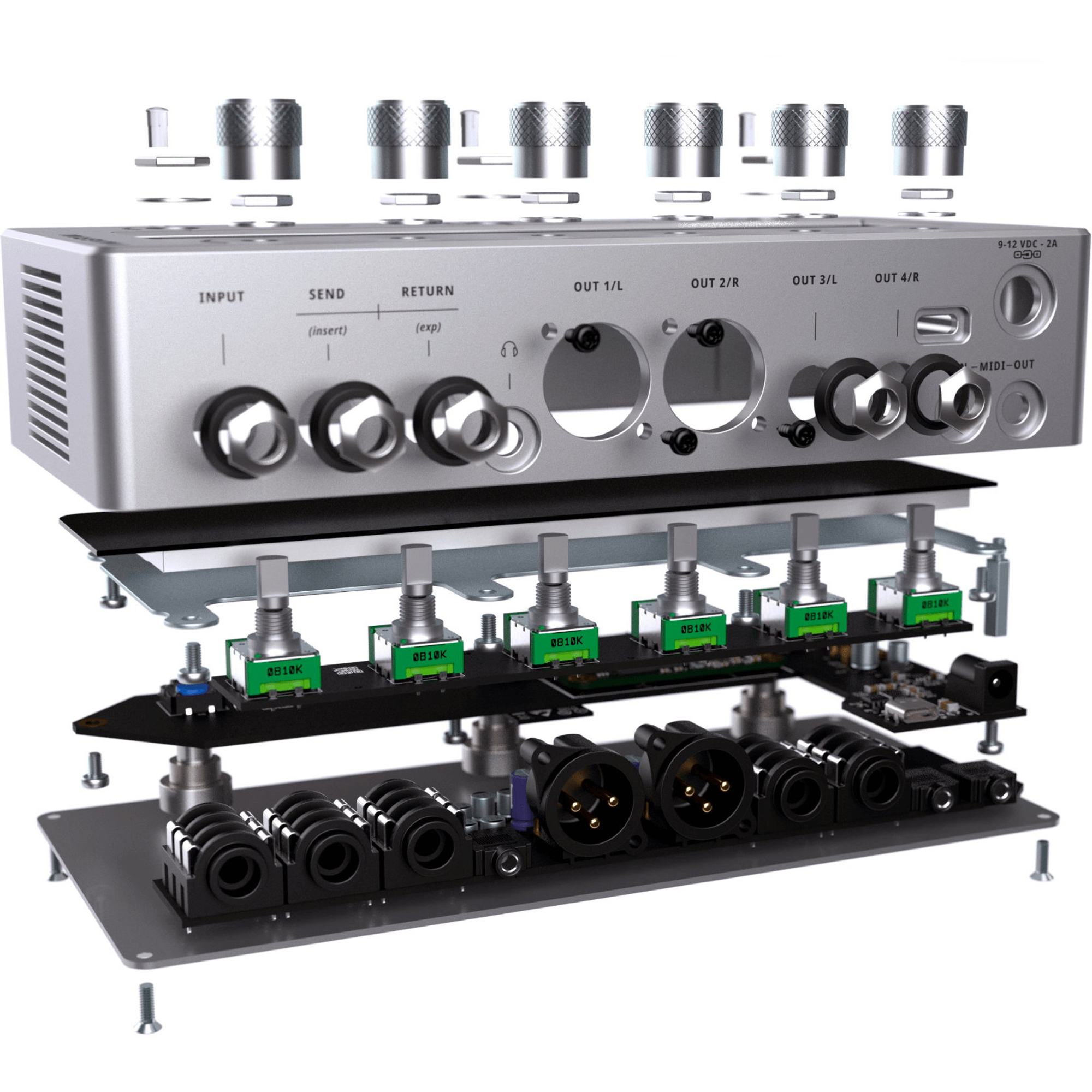 - Inputs: Stereo-In, Send/Return, dual Expression-Pedal