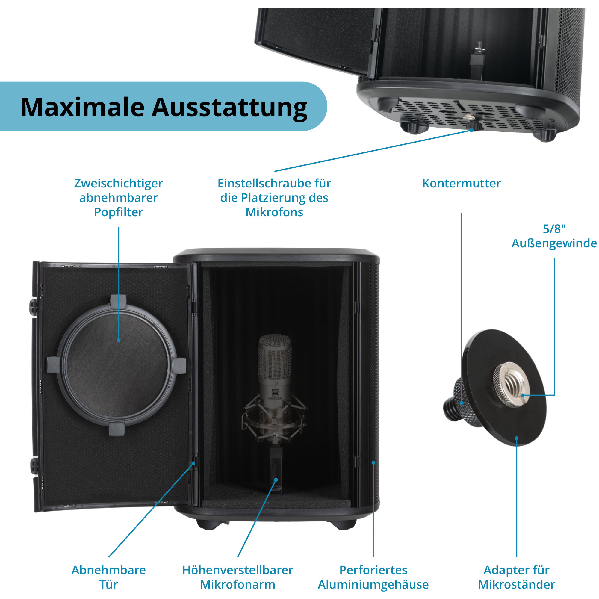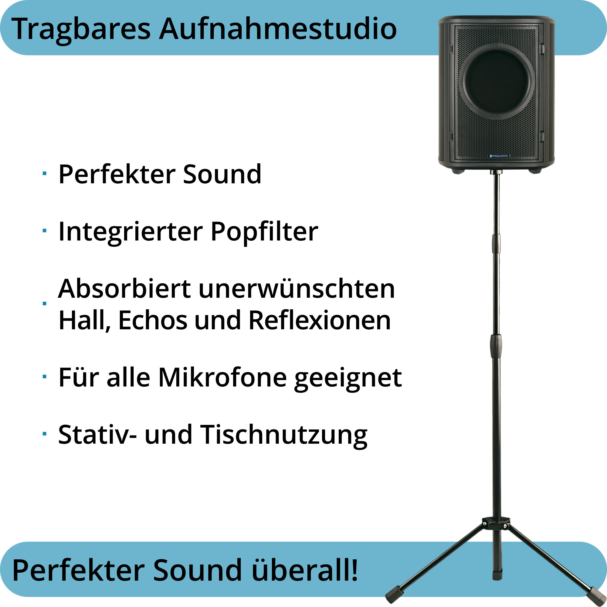 - Sorgt für ideale akustische Bedingungen für Gesangsaufnahmen