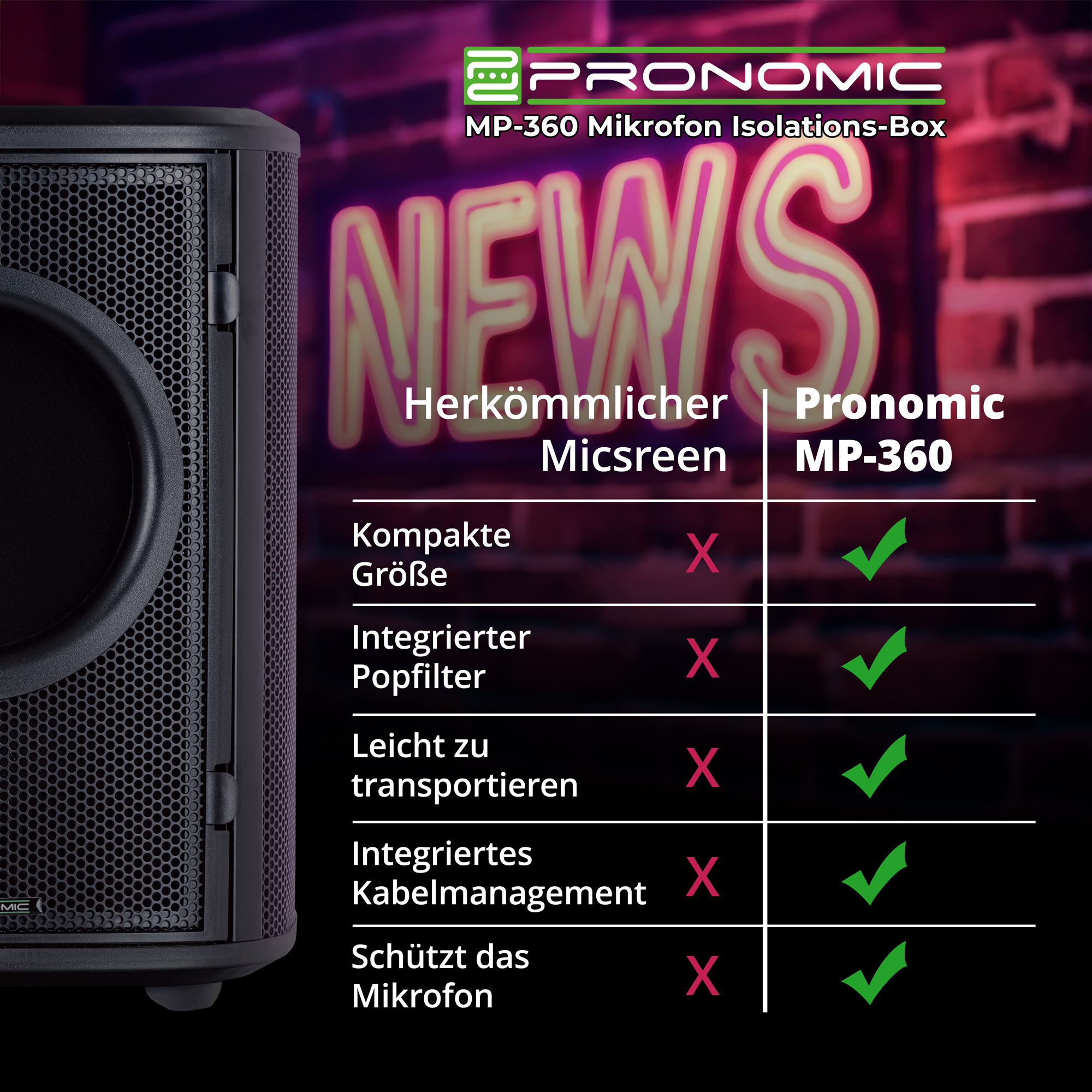 - 1 x Pronomic MP-360 Microphone Isolation Box