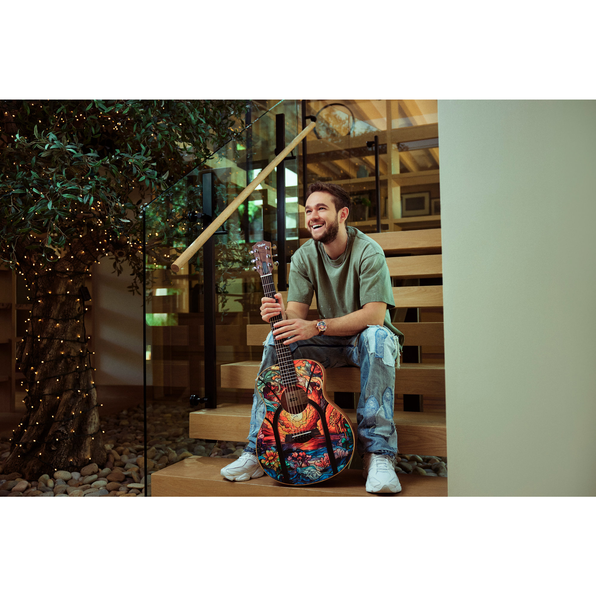 Nach der Veröffentlichung von Telos im August 2024 arbeitete Komponist, DJ und Produzent Zedd mit Taylor Guitars an einer speziellen GS-Mini-Ausführung zusammen, die den kaleidoskopischen Charakter des GRAMMY-nominierten Albums einfängt. Die Zedd GS Mini Telos Special Edition präsentiert ein beeindruckendes Custom-Top-Design, das in vollständiger, lebendiger Farbgebung aus dem Telos-Albumcover der Künstlerin Roseanna Lane übertragen wurde - ein wahrlich einzigartiges Instrument an der Schnittstelle von Kunst und Handwerk.