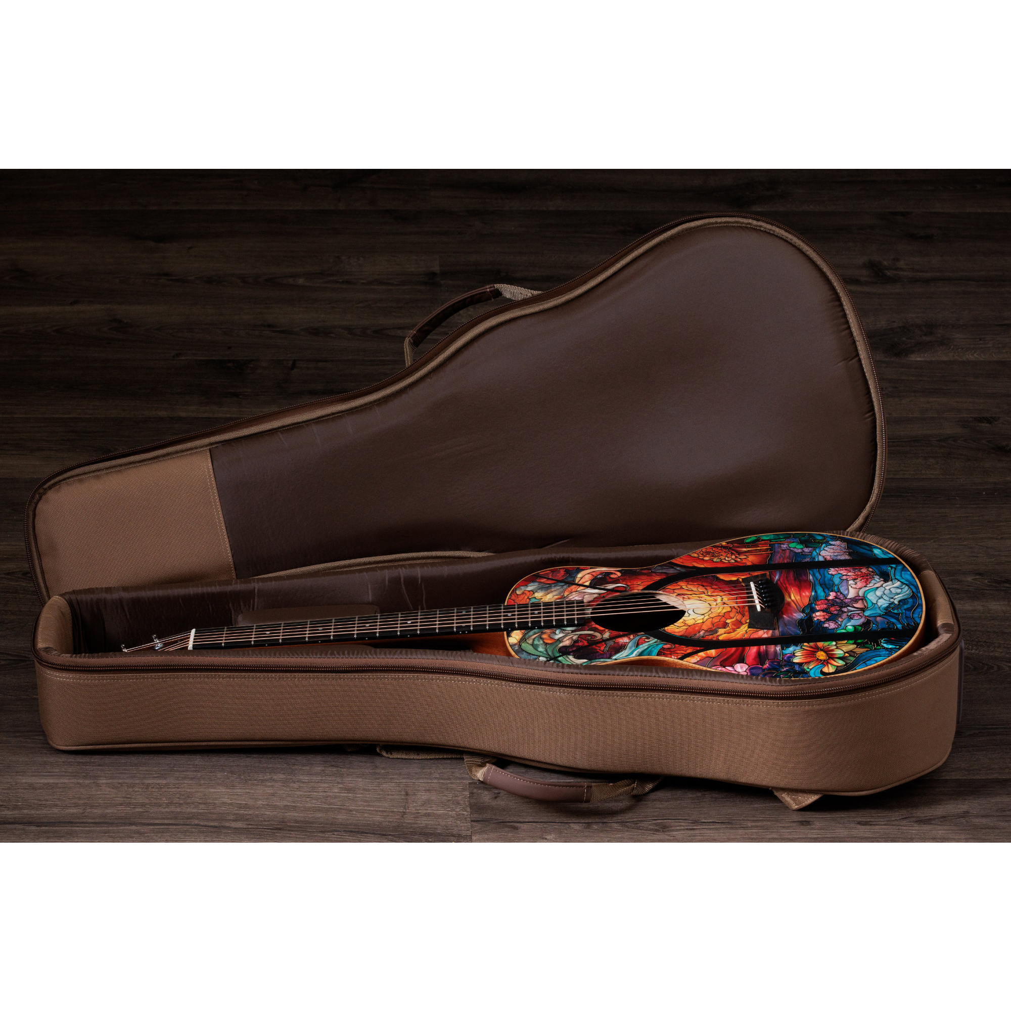 Neben dem eindrucksvollen Custom-Top verfügt das Modell über 4-mm-Punkt-Einlagen im Griffbrett, verchromte Druckguss-Mechaniken, ein mattes Finish sowie ein spezielles Zedd-Innenlabel. Geliefert wird es in einem robusten, strukturierten Gigbag für Schutz und einfachen Transport.