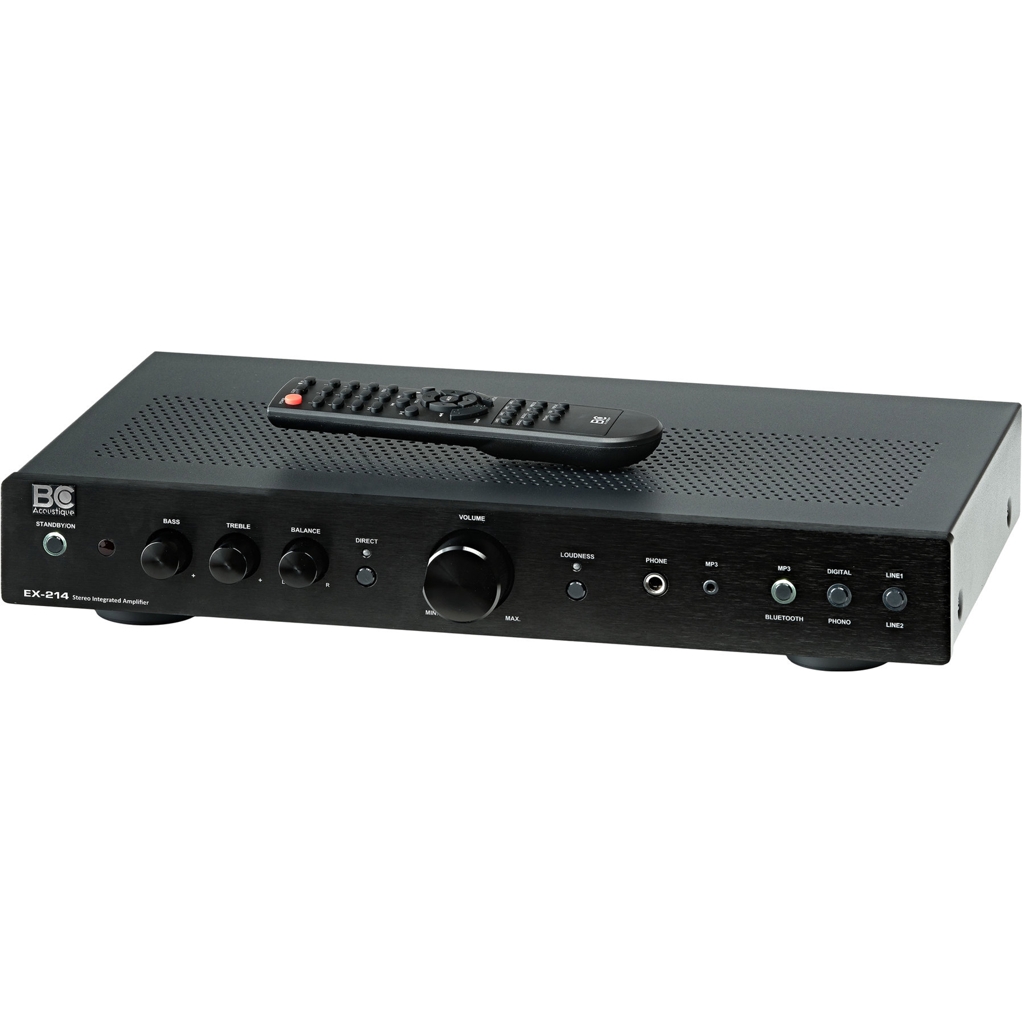 Der BC Acoustique EX-214 Verstärker wurde nach audiophilen Gesichtspunkten entwickelt, um dem Musikliebhaber eine originalgetreue Wiedergabe seiner Lieblingsmusik zu gewährleisten. Er liefert 2 x 45W RMS (8 Ohm) oder 2 x 70W (4 Ohm) und ist neben analogen auch mit digitalen Anschlüssen sowie einer integrierten Bluetooth-Antenne ausgestattet.