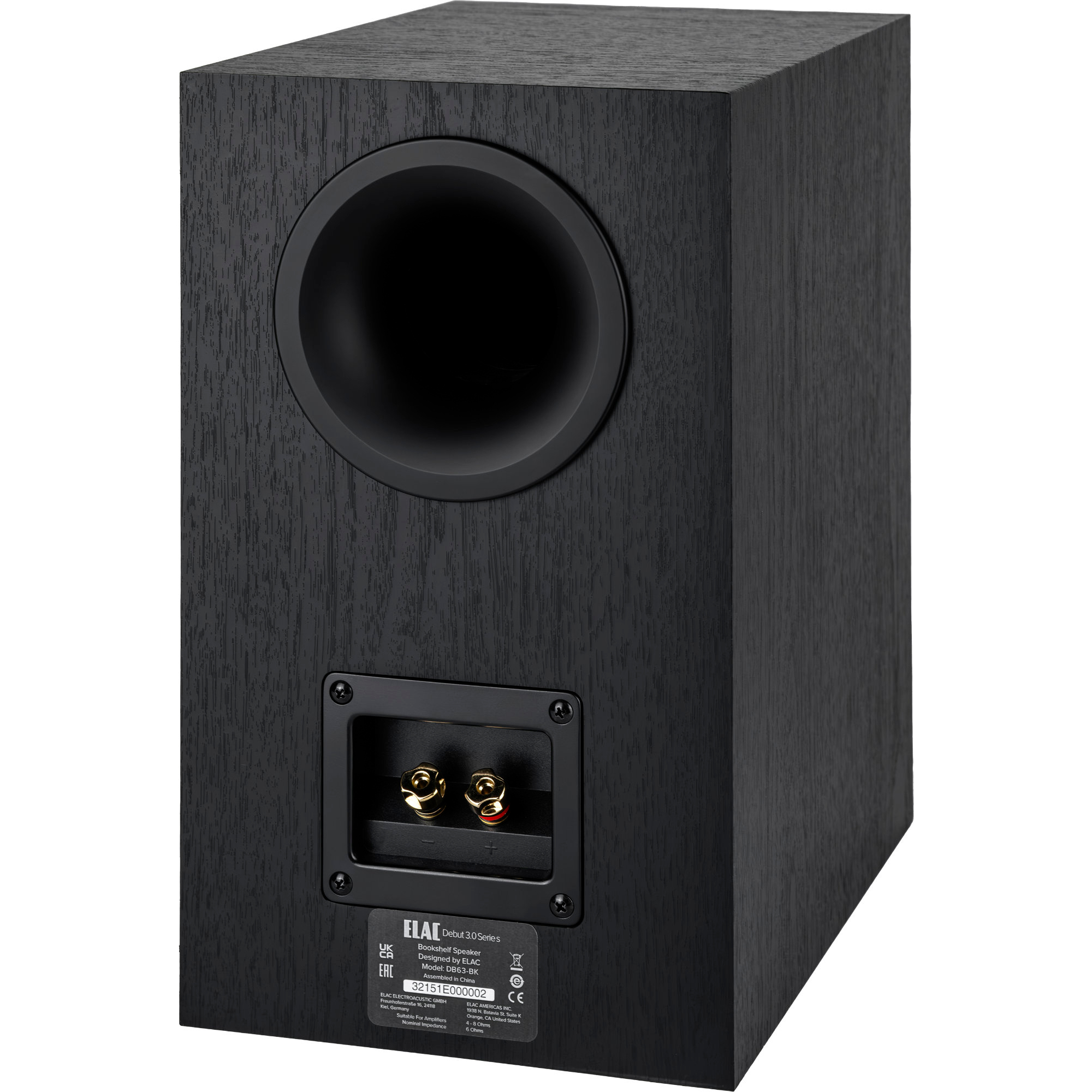 - Gehäuseoberfläche: Vinyl in schwarzer Esche, Satin Black Vinyl Front