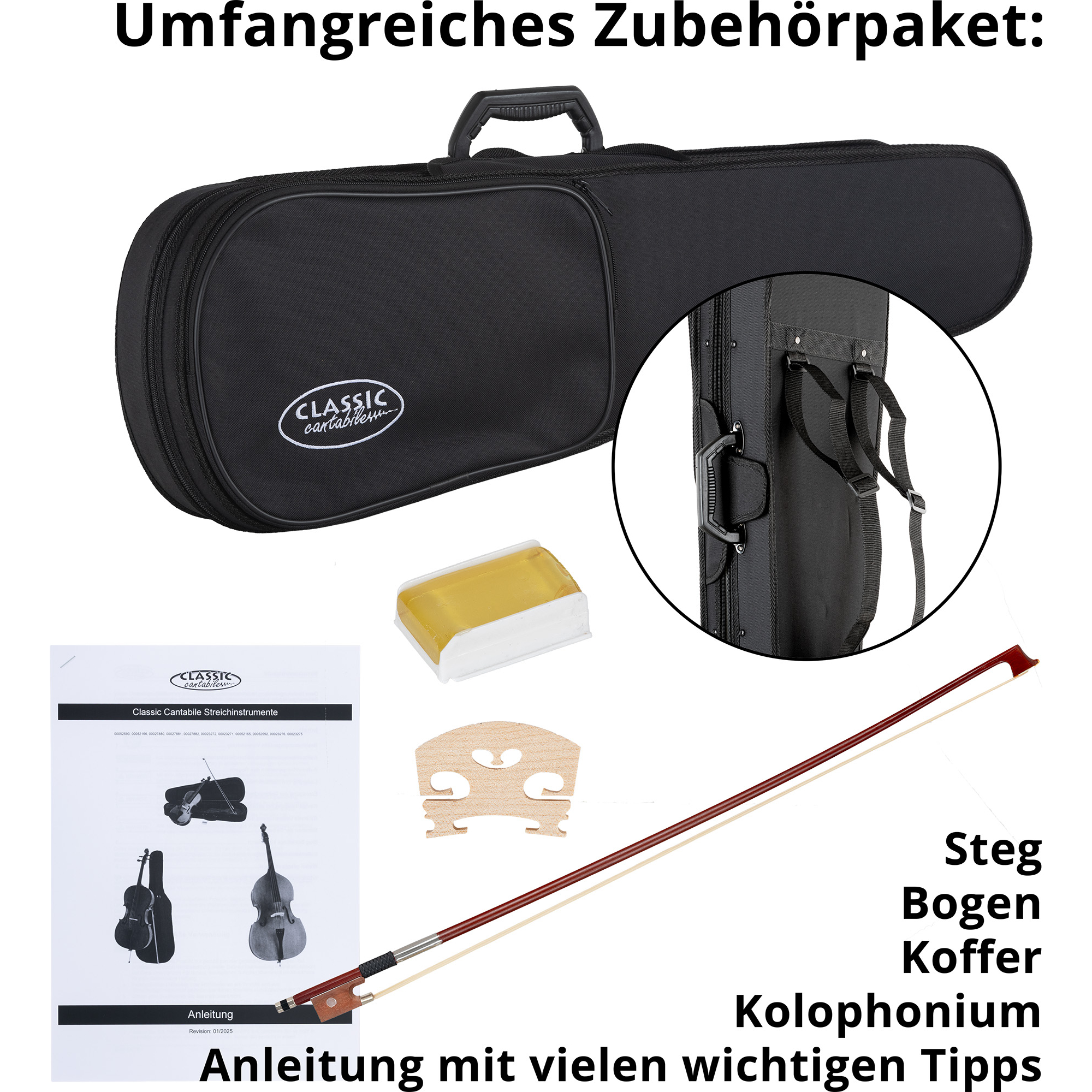 Das Classic Cantabile Violinen-Set aus der Student Serie richtet sich vor allem an Einsteiger und fortgeschrittene Violinenspieler, die Qualität zu günstigem Preis erwerben wollen. Der harmonische Klang der handgefertigten Geige ist in dieser Preisklasse einzigartig! Die Decke der Geige ist aus massiver Fichte gefertigt, während der Ahorn-Boden und die Ahorn-Zargen das klassische Design dieses edlen Instruments unterstreichen.