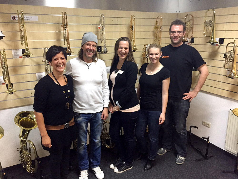 „In der Tat: die nicht anwesenden Trompeter haben eines der Ereignisse verpasst, die man als Trompeter nicht verpassen sollte: Rüdiger Baldauf live! Natürlich war es eine Wonne, ihn so aus der Nähe spielen zu hören! Meine Tochter hat eine Menge Tipps aus dem intensiven Einzelcoaching mitgenommen, die sie nun Stück für Stück versucht umzusetzen. Beachtlich fand ich, dass Herr Baldauf beim Workshop jeden Spieler/Spielerin auf jeweiligem Niveau abgeholt und individuelle Tipps gegeben hat! Der bringt seine Botschaften motivierend und auf nette Art und Weise rüber. Es war eine Freude, ihm zuzuhören! Ein netter Typ! Herzlichen Dank an Rüdiger Baldauf und an das Musikhaus Kirstein für die gute Organisation!“